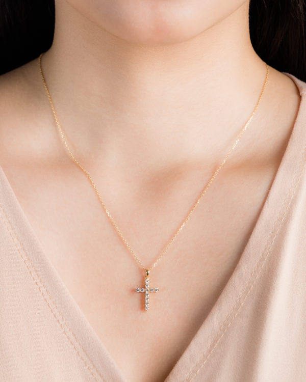 18K YG Crucifix Diamond Necklace