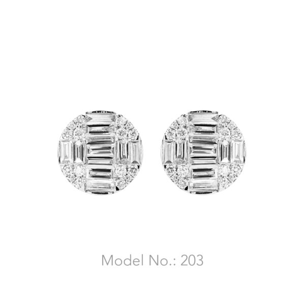 18K WG Round Illusion Baguette Earrings