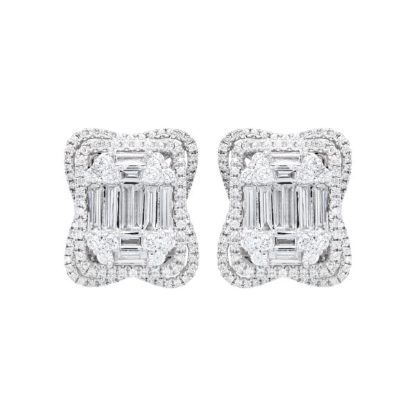 18K Yellow Gold Round Illusion Dangling Diamond Earrings