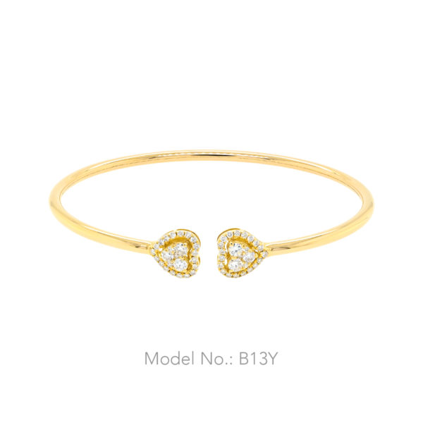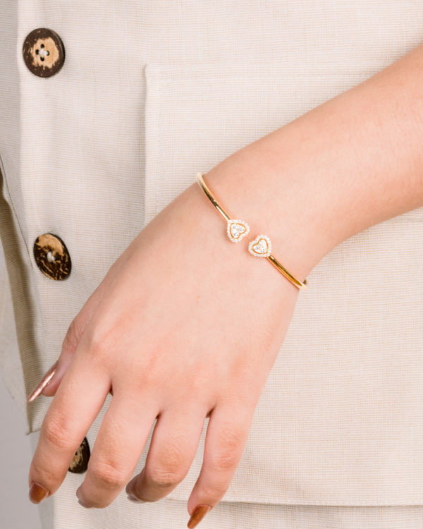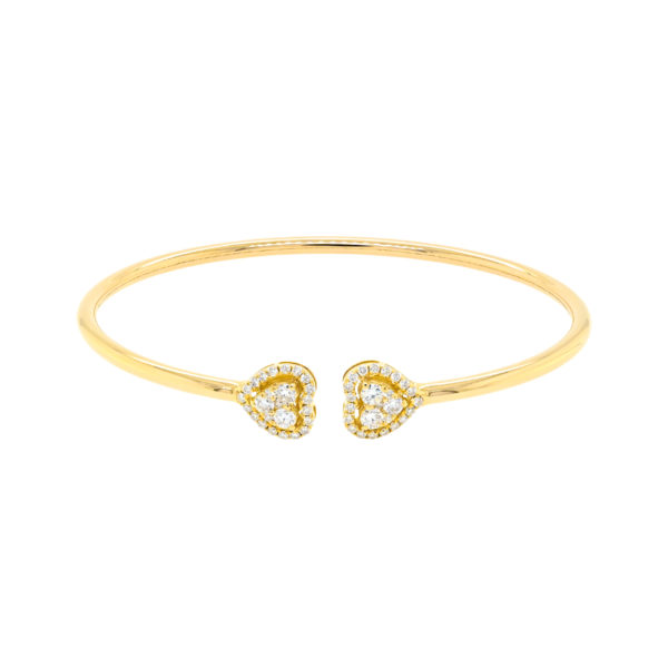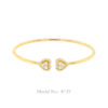 18K Yellow Gold Double Heart Illusion Cuff Bangle